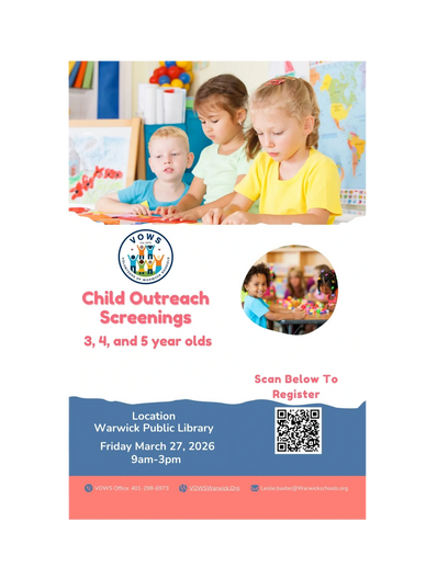 It's time to schedule your child's screening. Make an appointment today by emailing Leslie.Baxter@Warwickschools.org or by calling the VOWS office at 401-298-6973.